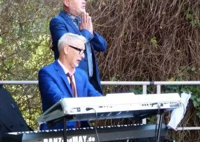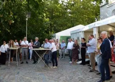 Ca. 80 Gäste genossen nach Begrüßungen des IPG Geschäftsführers Ralf Behrens und des LNBB-Vorstandsvorsitzenden Prof. Frank Gillert einen Auftritt des Kabarett-Duos Ranz und May. Anschließend gab es viele interessante Gespräche, ein Buffet aus dem Havelland sowie – passend zum Wetter – Eis aus der Manufaktur. Der Abend wurde begleitet mit Musik vom Jazz-Trio STAND-ARTS. Das LNBB stellte sein aktuelles Projekt BIG-Log vor.